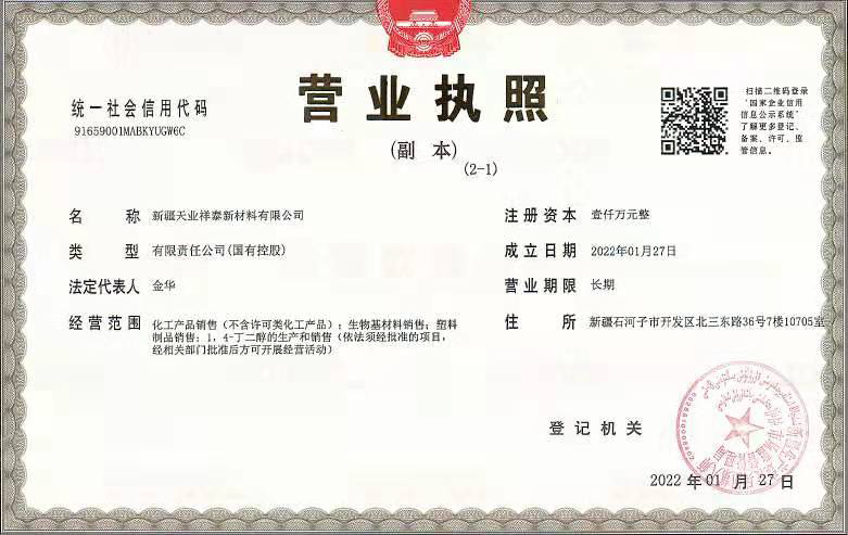 新疆天業(yè)祥泰新材料有限公司由東華科技與新疆天業(yè)(集團(tuán))有限公司共同設(shè)立,注冊(cè)資本金1000萬(wàn)元,其中東華科技持股49%。經(jīng)營(yíng)范圍包括化工產(chǎn)品銷售(不含許可類化工產(chǎn)品)、生物基材料銷售、塑料制品銷售、1,4-丁二醇的生產(chǎn)和銷售等業(yè)務(wù)。