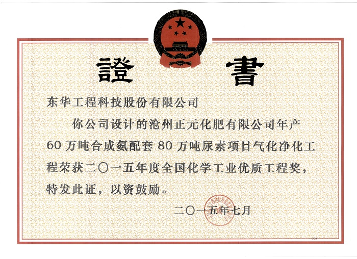 項目:滄州正元化肥有限公司年產60萬噸合成氨配套80萬噸尿素項目氣化凈化工程