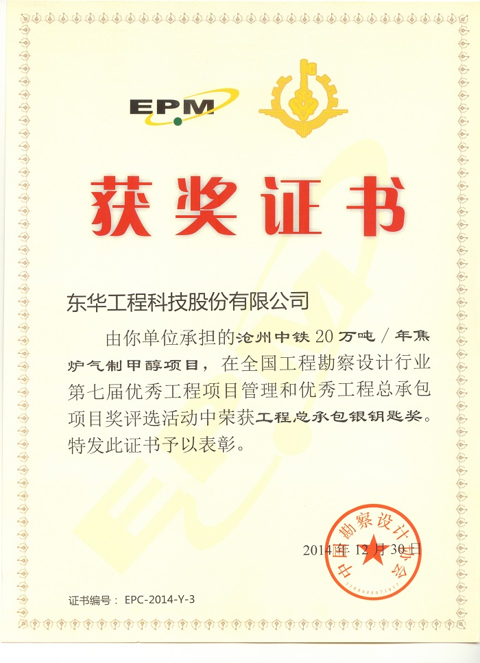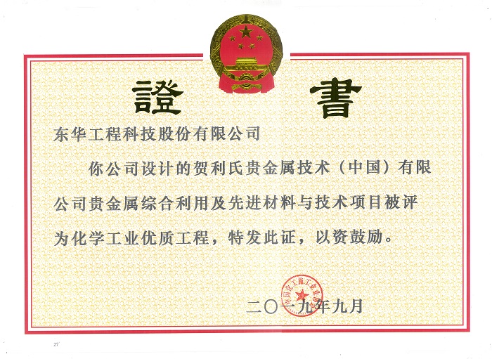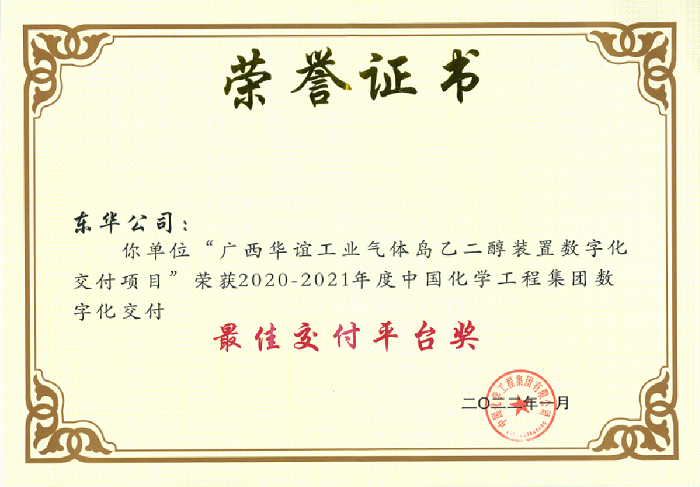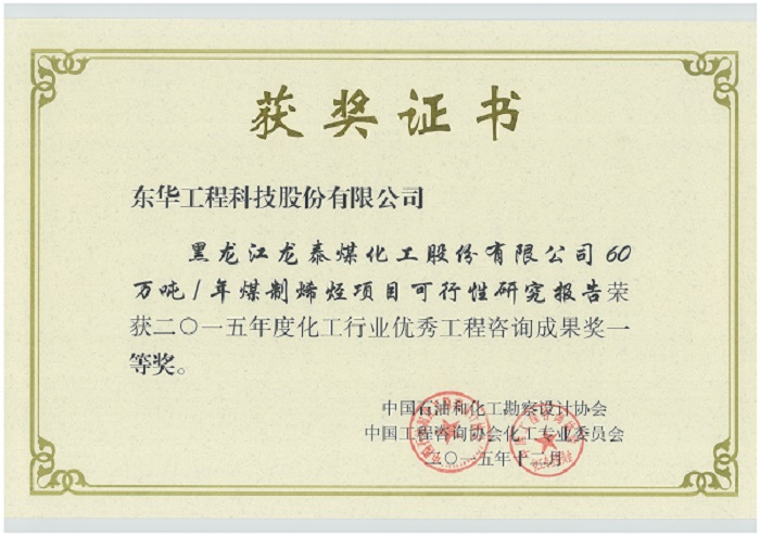 名稱:化工行業優秀工程咨詢成果獎一等獎