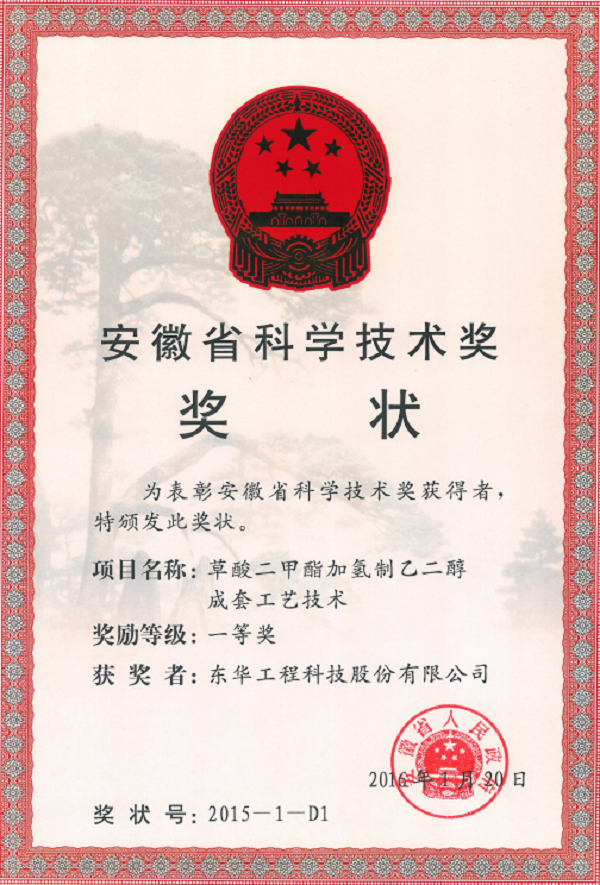 名稱:安徽省科技進步一等獎