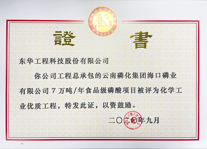項目:云南磷化集團海口磷業有限公司7萬噸年食品級磷酸項目