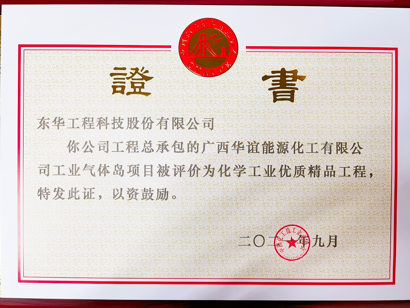 名稱:全國化學工業優質工程獎