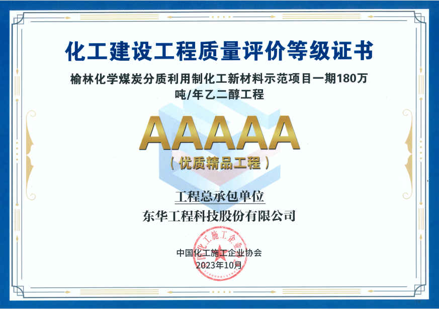 項目:榆林化學煤炭分質利用制化工新材料示范項目一期180萬噸每年乙二醇工程