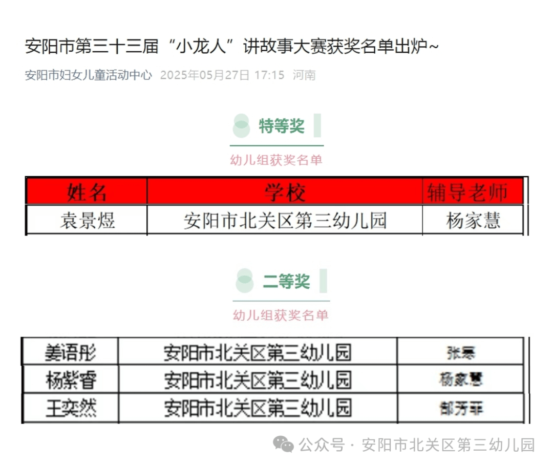 原文網(wǎng)址:熱烈祝賀北關區(qū)第三幼兒園在安陽市第三十三屆“小龍人”講故事大賽獲獎