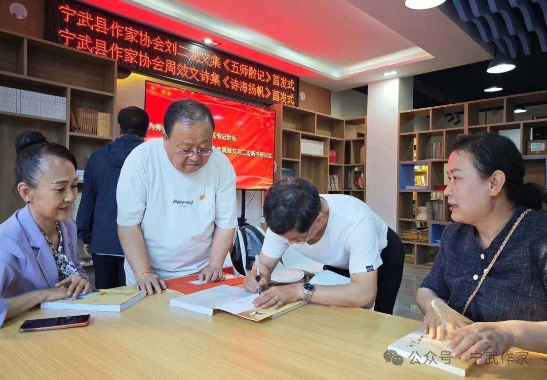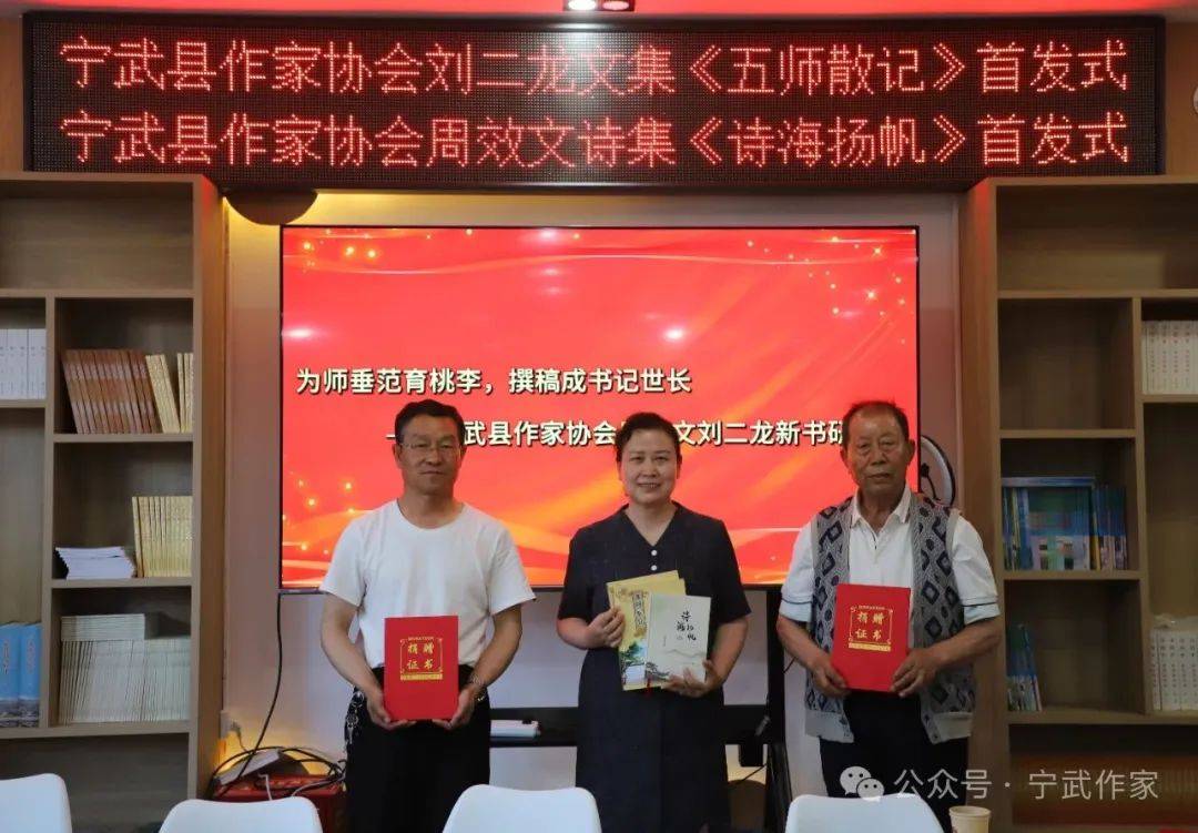 書香溢寧武,文脈傳薪火。6月8日下午,寧武縣作家協會周效文《詩海揚帆》、劉二龍《五師散記》贈書儀式在寧武新華書店職工讀書角舉行。