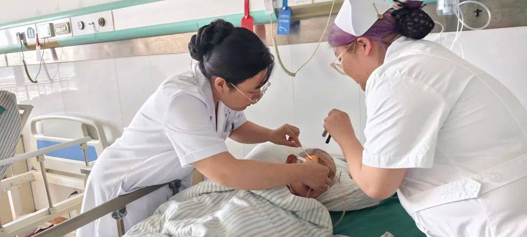 7月30日中午,白班護士在為老人進行鼻飼注食時,敏銳地發現其右眼舊傷邊緣滲出新鮮血跡,眼白充血明顯。這一異常立即引起警覺——經驗豐富的護士判斷情況遠超普通傷口變化,迅速通知護士長閆琪。閆琪趕到后,確認傷口撕裂范圍擴大,存在感染風險甚至可能影響眼部功能。她當機立斷:安排護士準備無菌換藥包,聯系眼科主任李會麗會診,同時以平穩專業的語氣向家屬通報情況,安撫焦慮情緒。
