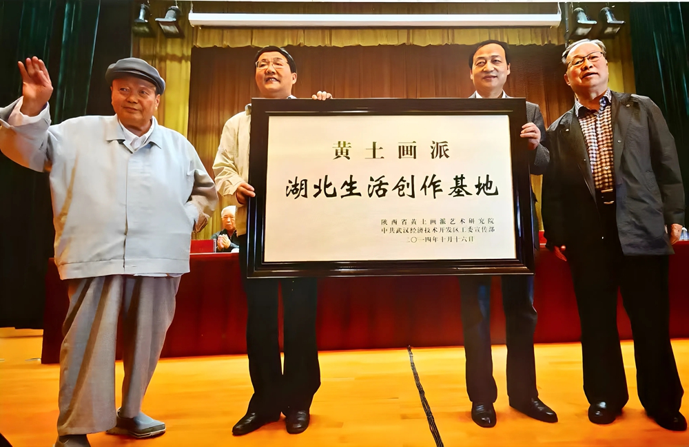 黃土畫派研究會(huì)長(zhǎng)劉文西、副會(huì)長(zhǎng)戴希斌向祝天華授牌《黃土畫派創(chuàng)作基地》