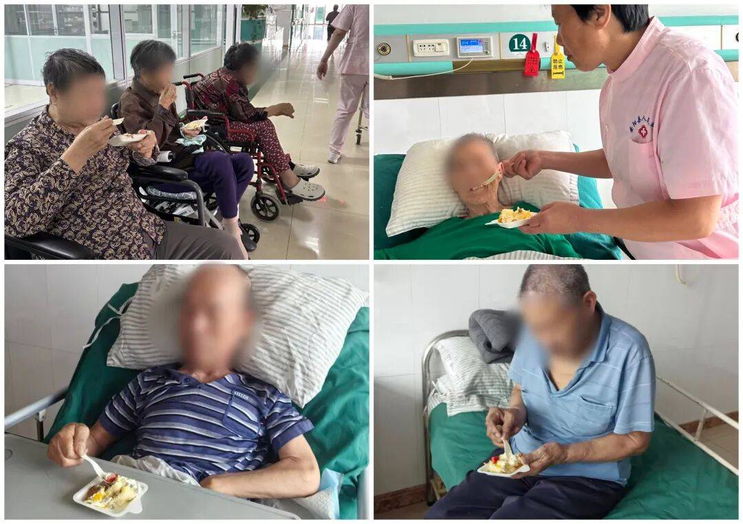 歌聲結(jié)束后,護(hù)理人員小心翼翼地將蛋糕切成小塊。“奶奶,嘗嘗蛋糕,不甜,很軟的。”護(hù)士輕聲說(shuō)著,用小勺舀起一小塊蛋糕胚,慢慢送到張奶奶嘴邊。張奶奶微微張開(kāi)嘴,細(xì)細(xì)咀嚼著,嘴角不自覺(jué)地向上揚(yáng)起一絲弧度。隨后,醫(yī)護(hù)人員又將蛋糕分裝到小碟子里,逐一送到科室其他能正常進(jìn)食的老人手中。