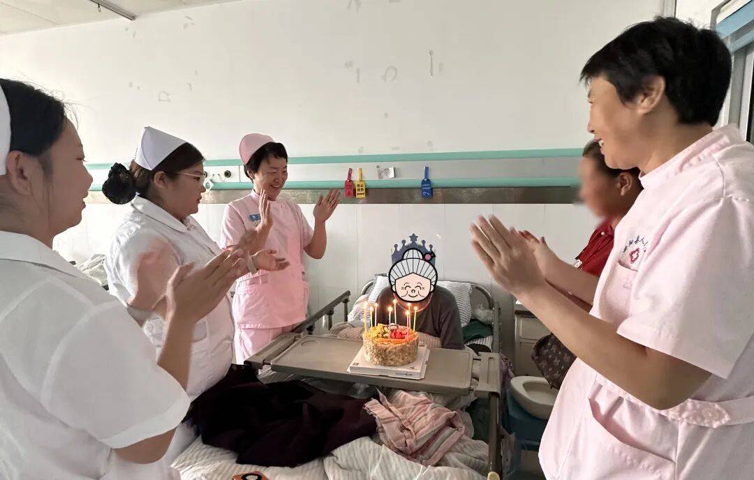 2025年9月21日上午11時(shí),醫(yī)養(yǎng)結(jié)合科404房間的門(mén)被輕輕推開(kāi),一陣溫馨而熟悉的《生日快樂(lè)》旋律緩緩流淌——這是科室醫(yī)護(hù)人員陪伴張奶奶度過(guò)的第十個(gè)生日。原本平靜躺著的張奶奶,似乎被熟悉的旋律喚醒,緩緩睜開(kāi)眼睛,目光在人群中流轉(zhuǎn)。當(dāng)看到女兒熟悉的臉龐,聽(tīng)到醫(yī)護(hù)人員親切的祝福時(shí),她的眼角慢慢濕潤(rùn),晶瑩的淚光在眼眶中閃爍,雖然無(wú)法用語(yǔ)言表達(dá),但這抹淚光,早已是對(duì)大家最好的回應(yīng)。