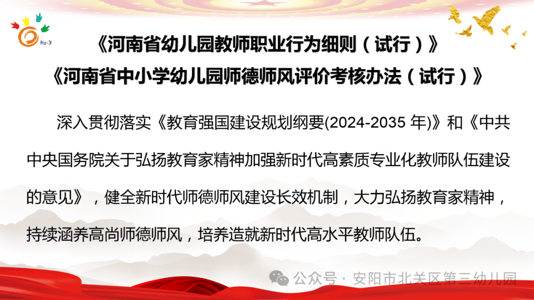北關(guān)區(qū)第三幼兒園將持續(xù)以《教育強國建設(shè)規(guī)劃綱要》為指引,筑牢師德根基,將師德規(guī)范融入日常保教工作的各個環(huán)節(jié),以專業(yè)與愛心點亮童年,為幼兒的健康成長保駕護航!