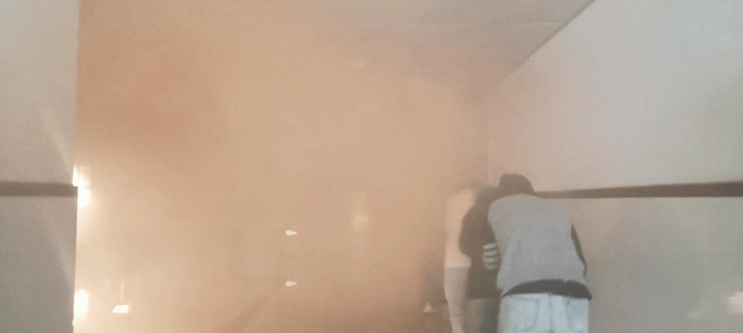 下午4:20,隨著急促的消防警報聲響起,應(yīng)急疏散演練正式拉開帷幕。模擬煙霧中,引導(dǎo)員迅速就位,沉著指揮。全體師生嚴格按照預(yù)案,用濕毛巾捂住口鼻,彎腰低姿,沿指定疏散路線快速、有序撤離至安全集結(jié)區(qū)。整個過程緊張有序、配合默契,達到了預(yù)期效果。