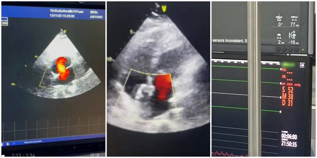 患者入院后,心血管內(nèi)科團隊高度重視,立即組織多學科會診,結(jié)合心臟超聲、心電圖等詳細檢查結(jié)果,與特邀專家共同研判病情,制定了精準的個性化手術(shù)方案。11月14日手術(shù)當天,經(jīng)右心導管檢查顯示,路女士的肺動脈壓已高達52mmHg,需盡快干預。在團隊的密切配合與專家的精準指導下,手術(shù)歷時36分鐘順利完成,成功對其直徑約25mm的室間隔缺損進行封堵。術(shù)后即刻超聲檢查證實,缺損處無過隔血流,手術(shù)效果達到預期。