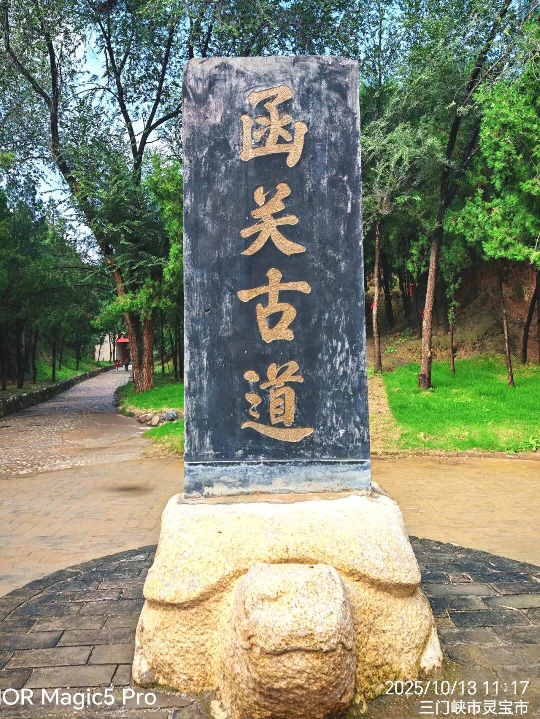 我們緩步走出關(guān)門,在關(guān)前廣場合影留念;隨后乘擺渡車,飛速度過三千年時光之河,用一次次深情的回眸,告別函關(guān)古道,告別函谷關(guān),告別靈寶。
