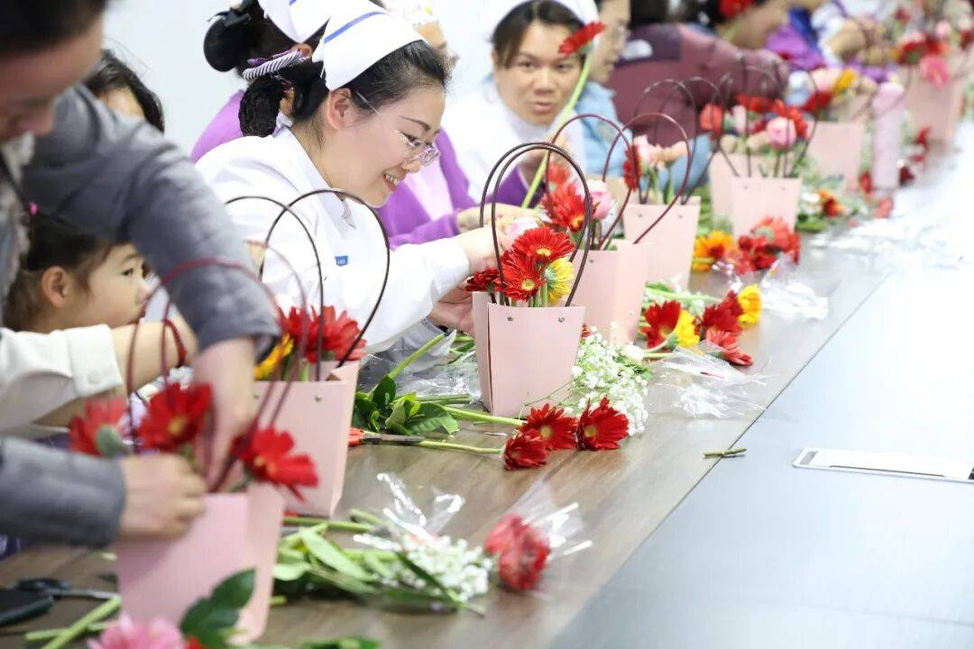 活動(dòng)現(xiàn)場(chǎng)花香馥郁、暖意融融。專(zhuān)業(yè)花藝?yán)蠋煬F(xiàn)場(chǎng)授課,細(xì)致講解插花技巧、色彩搭配與花語(yǔ)寓意,手把手進(jìn)行示范教學(xué)。女職工們認(rèn)真聆聽(tīng)、踴躍嘗試,平日里堅(jiān)守在醫(yī)療一線的“白衣天使”,化身心靈手巧的花藝創(chuàng)作者。