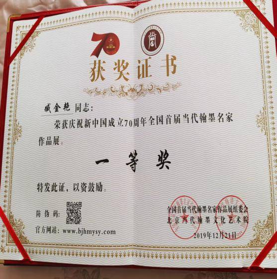時光不負趕路人,經(jīng)過刻苦的學(xué)習(xí),繪畫技術(shù)的長進,她的作品被書畫界及非遺文化機構(gòu)認可,在社會上贏得年畫愛好者們的認可,多次參加畫展,有的被舉辦方收藏。一個又一個的榮譽向她走來。2019年12月21日,她的作品參展了慶祝新中國成立70周年首屆當(dāng)代翰墨名家展示,榮獲了一等獎。2016年10月,其作品《和諧社會生活美如畫》入選2016年山東省文化廳主辦、山東省文化廳非物質(zhì)文化遺產(chǎn)處和山東美術(shù)館承辦的“非遺于文創(chuàng)——第四屆中國非遺博覽會之高等院校文創(chuàng)成果展”。2023年11月,她被評為第五批西青區(qū)非物質(zhì)文化遺產(chǎn)代表性傳承人。2025年12月31日,她收到楊柳青鎮(zhèn)綜合便民服務(wù)中心、天津市楊柳青年畫協(xié)會頒發(fā)的“木板傳古韻,年畫譜新章”楊柳青木版年畫人才培養(yǎng)班結(jié)業(yè)證書。她的學(xué)習(xí)繪畫之路是刻苦的,是勤奮的,有的培訓(xùn)課要晝夜跟老師學(xué)習(xí),需要住宿幾天。她都從不放棄每次學(xué)習(xí)的機會。