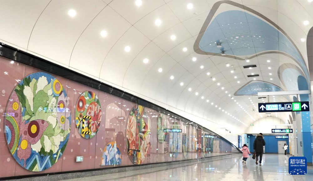 乘客走過牡丹園地鐵站內的壁畫(1月20日攝)。