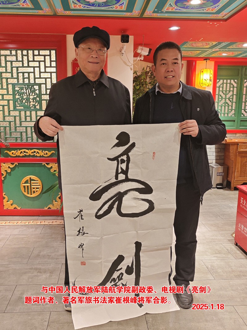 與原中國(guó)人民解放軍陸軍航空兵學(xué)院副政委,少將軍銜、電視劇《亮劍》片名題詞作者崔根峰將軍合影。