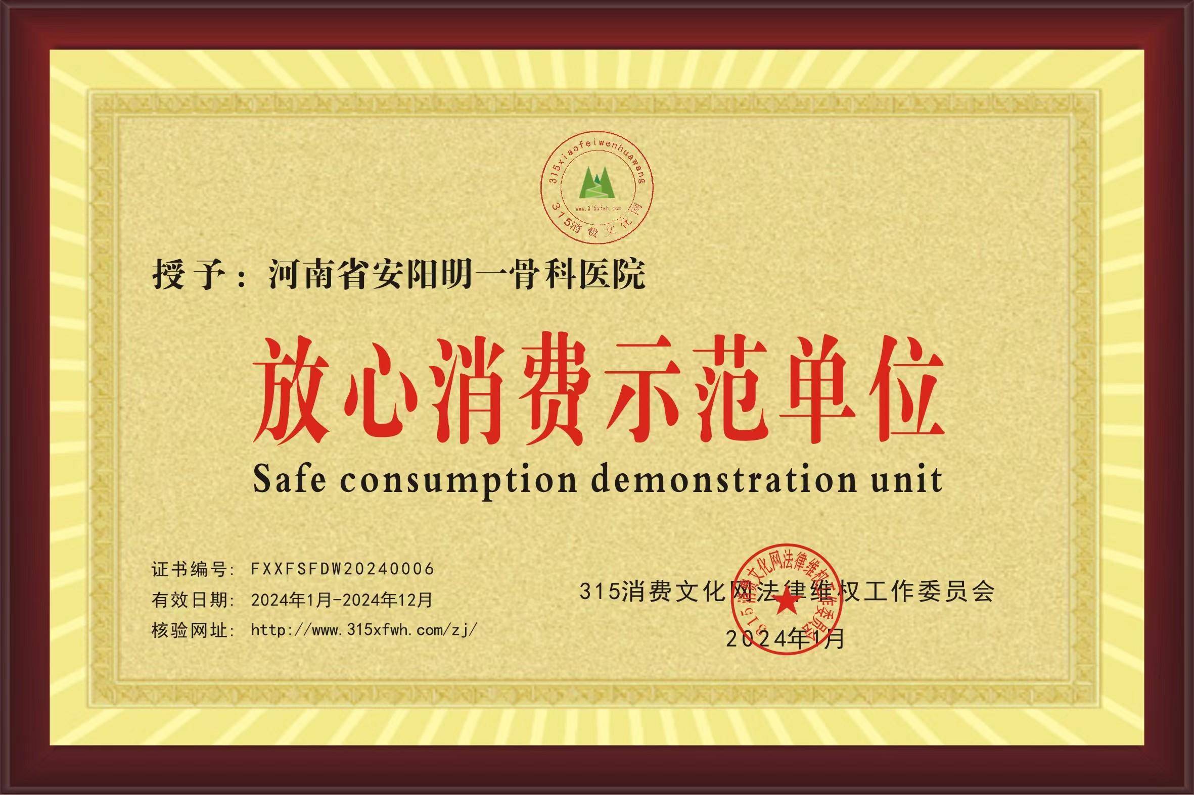 熱烈祝賀明一骨科醫(yī)院被推選為放心消費示范單位
