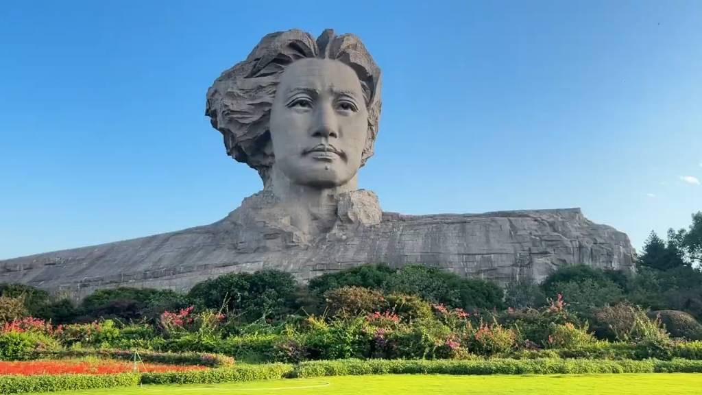 偉人風(fēng)青,湘江奔流,橘子洲頭。望濤濤江水,聲聲不息,大江東逝。云濟(jì)親游,浩路無窮,深山幽谷,豪邁奔區(qū)竟鮮流,看吟罷,誰主江秋?