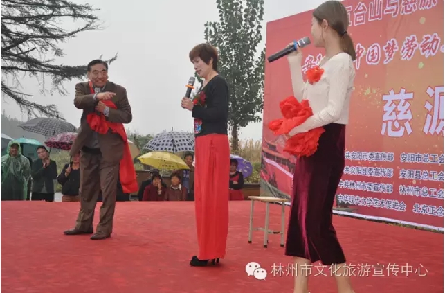 揭碑后,由中共安陽市委宣傳部、市總工會、市文明辦、市文廣新局、市文聯(lián)主辦,中共安陽縣委宣傳部、縣總工會、縣文明辦、縣文化旅游局、縣文聯(lián)、縣廣播電視總臺、中共林州市委宣傳部、市總工會、市文明辦、市文廣新局、市文聯(lián)承辦,中華現(xiàn)代文學藝術(shù)促進會、北京正念正心國學文化研究院、林州慈源寺管委會、安陽飛天文化管理有限公司協(xié)辦的“中國夢·勞動美”千場演出送基層走進慈源寺正式開演,開場舞《張燈結(jié)彩》;張瑞的豫劇《人歡馬叫》;胡文玲的快板《天安門廣場看升旗》;王平原、苑麗珠、孟家珉表演的小品《迎親》;張尚運、張愛紅的京劇《智斗》;喬海剛、吉祥表演的二人轉(zhuǎn);張尚運、張愛紅演唱歌曲《歡聚一堂》、歌伴舞《共筑中國夢》精彩的節(jié)目贏得了觀眾的陣陣掌聲,電視劇《西游記》沙僧的扮演者劉大剛老師也即興表演了一段京劇,使活動推向了高潮。