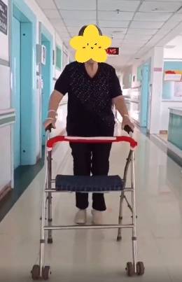 患者術后 病情穩定, 在骨科醫護人員的精心照料下,可在助行器輔助下下地活動, 關節疼痛明顯緩解, 功能顯著改善。術后第2天,患者雙手便可推開助行器行走 。面對良好的手術效果,患者露出了滿意的笑容。