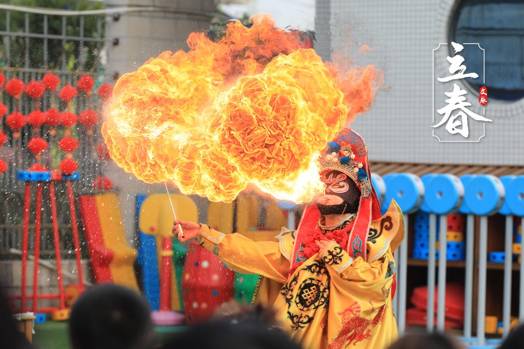 ??↑四川省廣安市武勝縣的民間藝人在表演川劇絕活“吐火”。CICPHOTO/夏俊林 攝