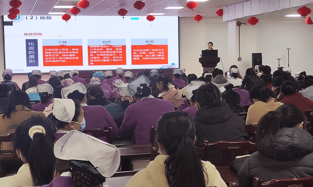 3月29日上午,醫院特別邀請專業禮儀講師陳瑤,為全體護士進行了系統的理論授課。 講師著重講解了護士儀容、儀表、儀態及著裝的基本要求。 從面部妝容的淡雅適宜,到發型的整潔規范; 從站姿、走姿、坐姿的標準姿勢,如站立時頭正頸直、挺胸收腹,行走時雙臂自然擺動、步幅適中,再到持病例夾、端治療盤、推輪椅等日常工作中的儀態規范,每一個細節都進行了細致入微的講解與示范。